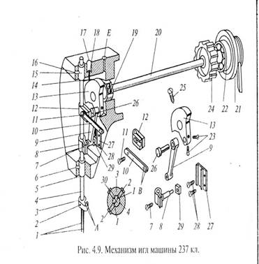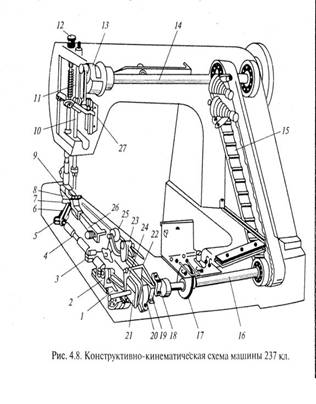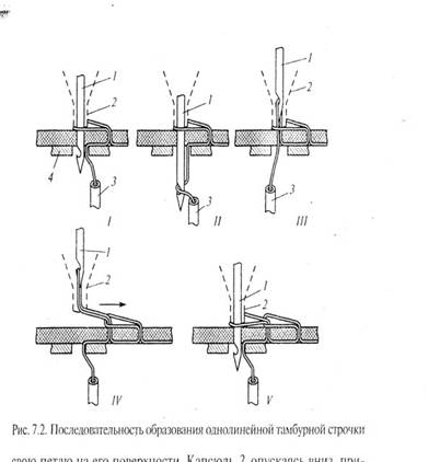 машины состоит в закреплении стежков второй нитью, проходящей снизу. Игла