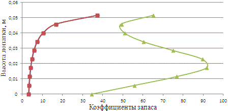 прочность получены допустимые запасы прочности по всей высоте пера лопатки.