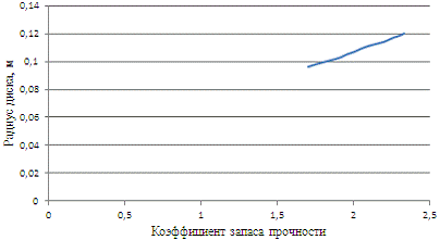 всей высоте диска. Минимальный запас прочности получен в 1 сечении диска (к