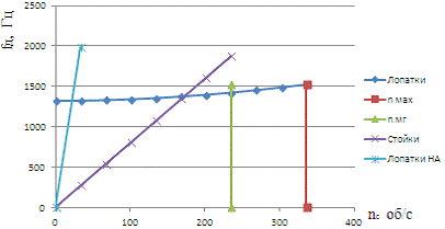 резонансных колебаний лопаток при работе компрессора в его рабочем диапазоне невозможно.