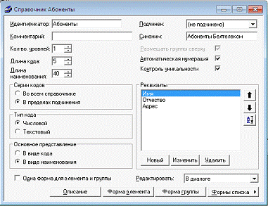 4.1 Создание справочника "Абоненты"