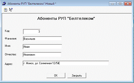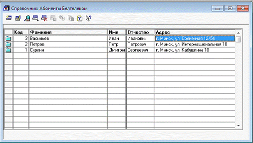 списка выбрать фамилию абонента из справочника. Поля имя, отчество и адрес