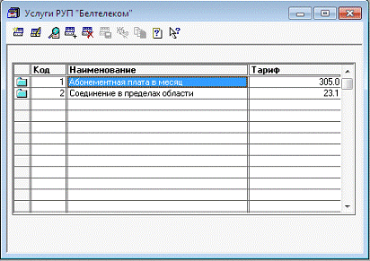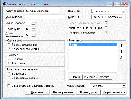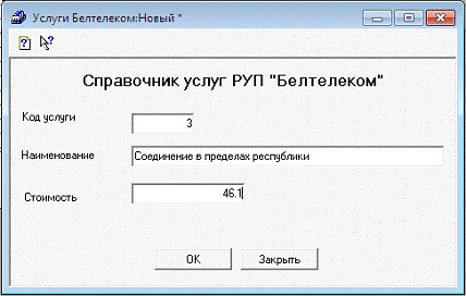 4.2 Создание справочника "Услуги РУП "Белтелеком"