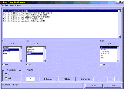 среды, как коэффициентов вывода по Сугено, позволяет получать оптимальные аппроксиматоры