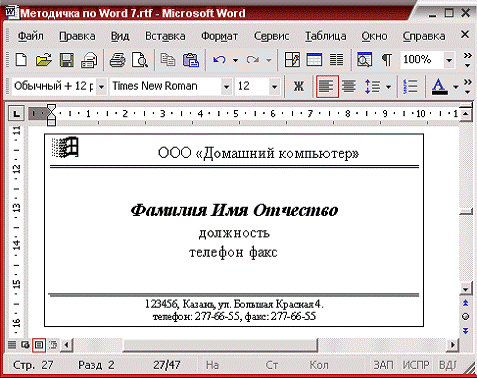 Создание визитной карточки программами Microsoft word 2003 и Microsoft publisher 2003