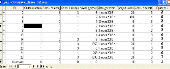 список документов, заведенных в системе. Кнопками перехода возможен переход к