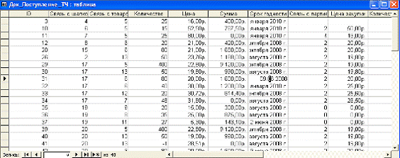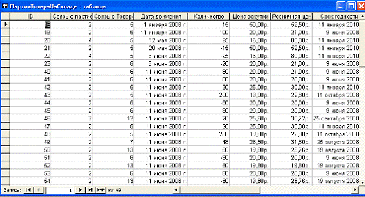 таблице ПартииТоваровНаСкладах.