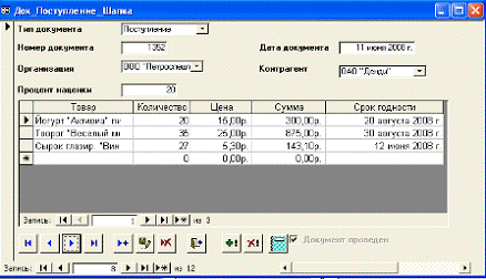 товаром, количеством, ценой поступления, сроком годности, сумма считается