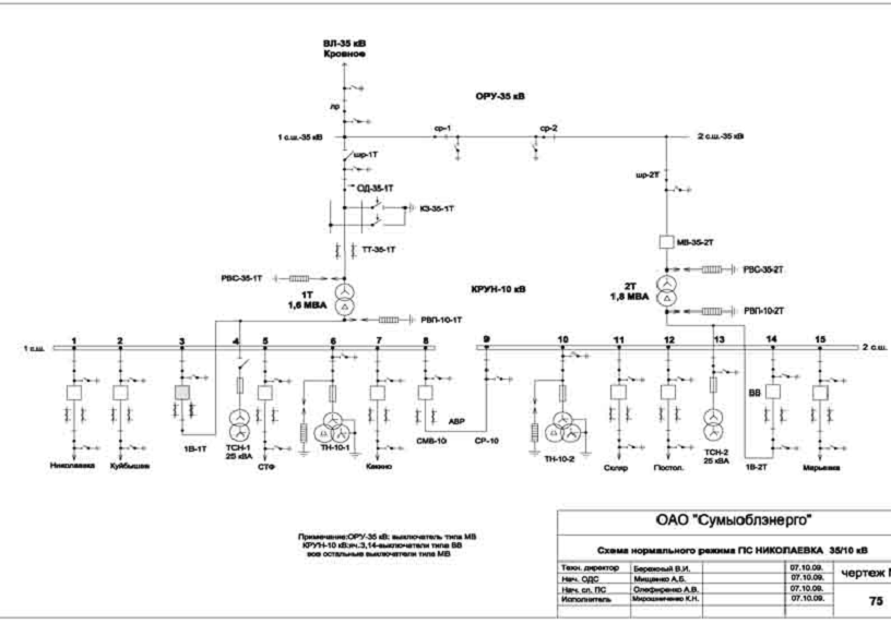 5.1 Типовая схема нормального режима подстанции 35/10кВ