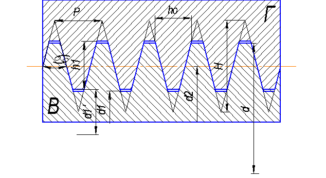 внутренний диаметр резьбы винта, выразив его из формулы: