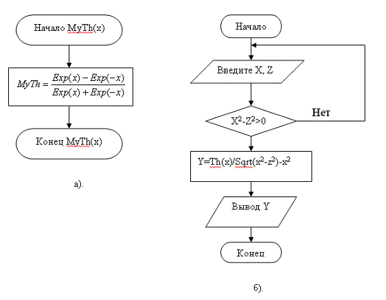 1. Блок-схема программы вычисления функции Y = Th(x)/