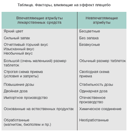 обстоятельств «лечения» - например, от внешнего вида плацебо, его цены и общей