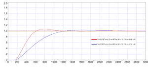 настроенной по методу МПК в ОВ-2,3.1, если объект задан в виде инерционного звена