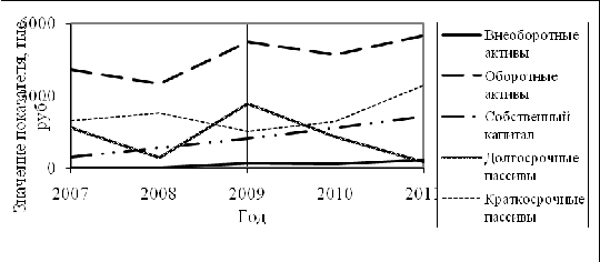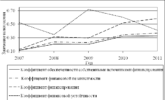 показателей финансовой устойчивости ООО «ХХХ» с 2007 по 2011 гг.