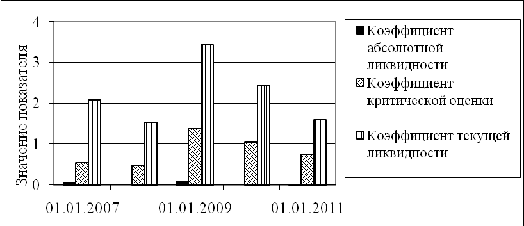 показателей платежеспособности ООО «ХХХ» с 2007 по 2011 гг.