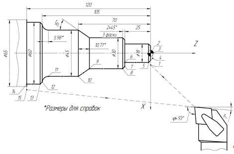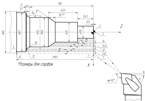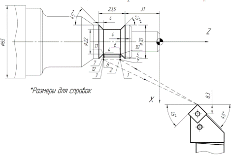 Рисунок 6 - Схема чистовой обработки канавки Ø14