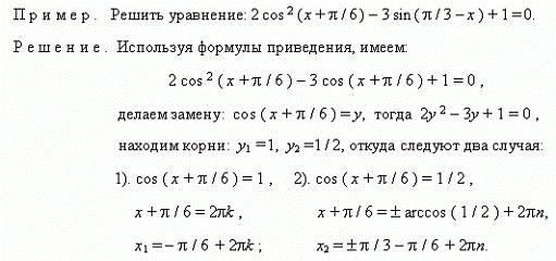 тригонометрических уравнений в курсе алгебры и начала анализа.