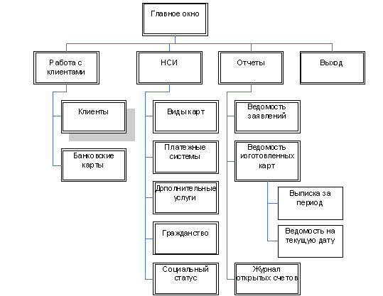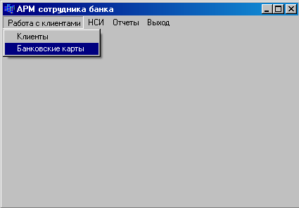 Работник банка с помощью пунктов главного меню может переключатся между