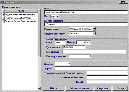- Клиенты. Данный пункт меню позволяет перейти к режиму работы
