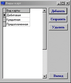 - Виды карт. Данный пункт меню открывает окно для внесения или