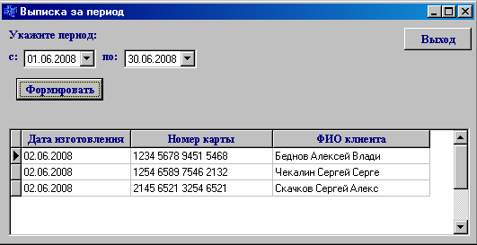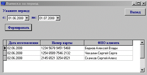 осуществляется выборка из ведомости выпущенных карт за указанный период.