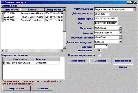 банковскую карту, выдачу карт.