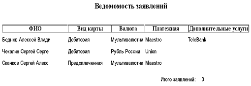 ведомость заявлений на выпуск банковских карт.