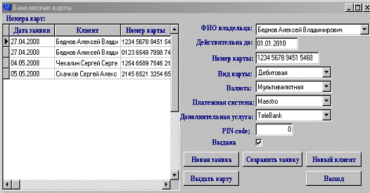 обеспечивают ввод и редактирование информации о заявках клиентов на выпуск банковской