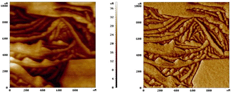 "полуконтактном" режиме (амплитудный и фазовый контраст) [5].