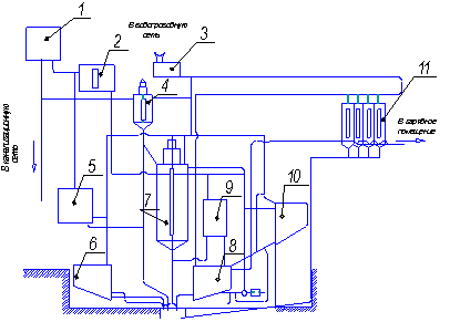 сетью, канализацией, паропроводом, воздушной сетью 1атм.. Электроосветительное