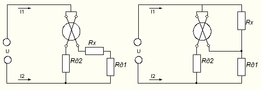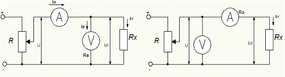 рис.1, а, следует пользоваться для измерения малых сопротивлений, а схемой,