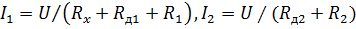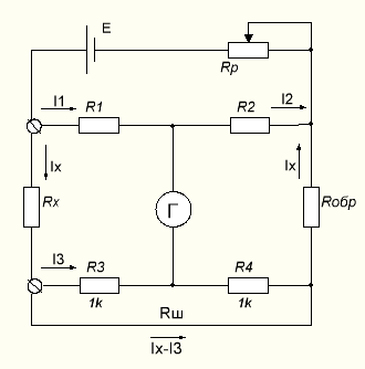 производятся на постоянном токе, при этом включение неизвестного резистора Rх,