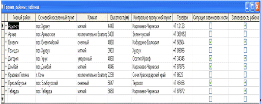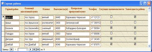 «Классификация горных районов Западного Кавказа». Разрабатываемая база данных