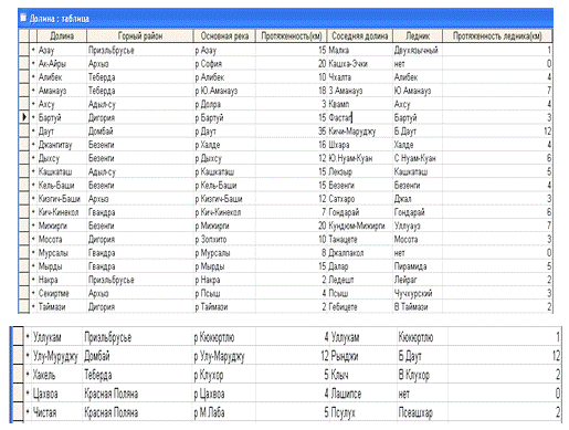 SELECT Долина.[Горный район], Долина.Ледник, Долина.Долина,