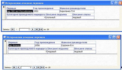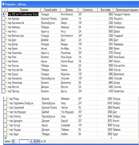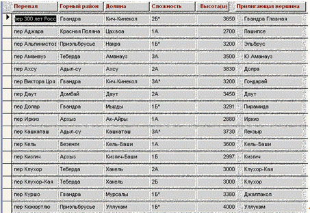 Перевалы.[Высота(м)] = [введите высоту], Перевалы.[Прилегающая вершина] = [введите