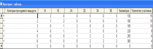 SELECT Категории.[Категория проходимого маршрута], Категории.[1А],
