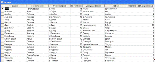 SELECT Долина.Долина, Долина.[Горный район], Долина.[Соседняя долина],