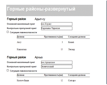 База данных должна содержать данные об горных районах, долинах, входящих в