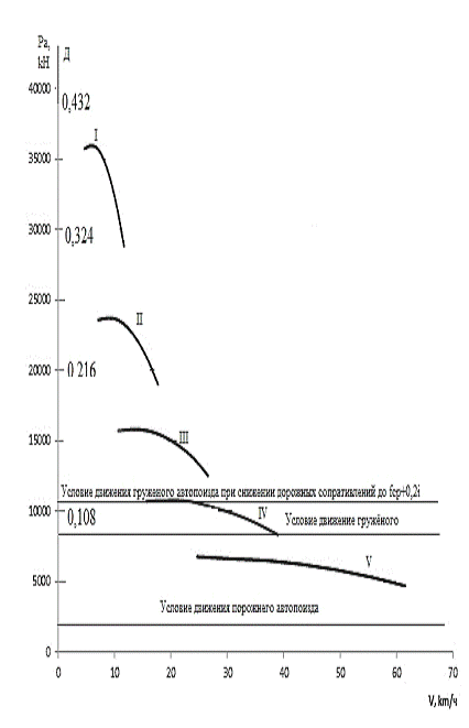 четвертом разделе рассчитана и построена тягово динамическая характеристика. В
