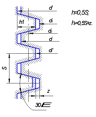 резьбу (на изгиб, срез и удельное давление), основные её размеры (H, D), а