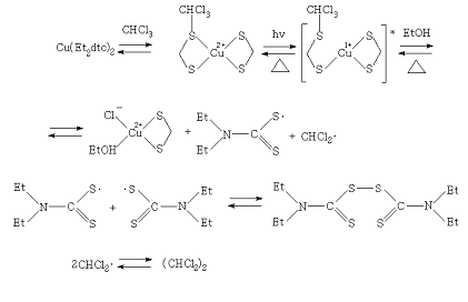 реакции рекомбинации комплексов [Cu (II) (dtc) (dtc·) Clэ] в димер, что объясняет