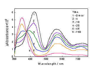 Время ее формирования близко к времени исчезновения полосы на 570 нм. Отметим,