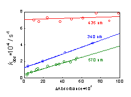 Линейная зависимость наблюдаемой константы скорости исчезновения поглощения на