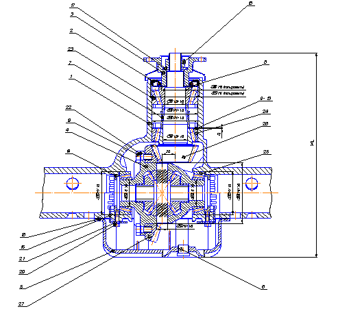 ней ведомой шестерней (поз.27) главной передачи, размещенных внутри