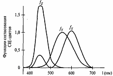 - CIE, MKO) приняла в качестве стандарта набор из трех гипотетических функций