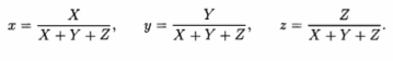яркости. Нормированные значения X и У, обозначаемые х и у, используются для
