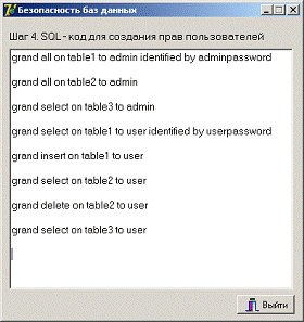 Формирование системы безопасности. Визуализация пользователей и объектов. Перевод в команды SQL, их последующая трансляция и сохранение в системном каталоге
