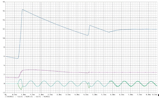 преобразователя напряжения, осциллограммы напряжений в катушках.
