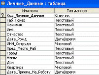 полей. Поле Код_Личные_Данные имеет тип счетчик и предназначен для нумерации