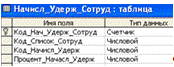 используется 3 поля. Поле Код_Начисл_Удерж имеет тип счетчик и предназначен для